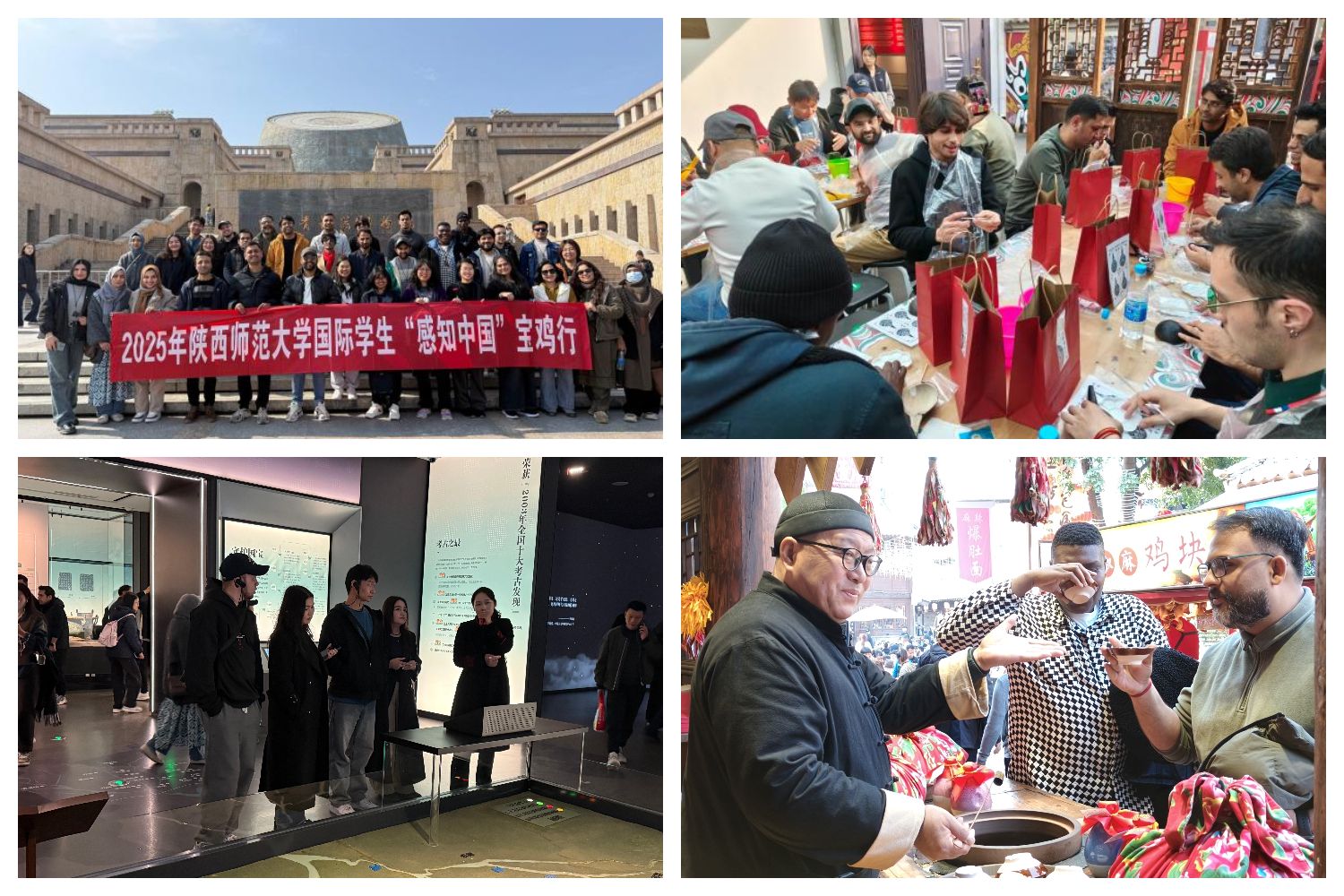 在宝鸡,国际学生先后前往宝鸡青铜器博物馆、西府老街、马勺脸谱博物馆等地参观学习,并动手学习马勺脸谱绘制这一非遗技艺。通过实地参访和亲身实践,国际学生进一步增进了对周秦文明和关中文化的认识和了解。大家纷纷感叹自己被中国文化的魅力所深深吸引,活动为国际学生开启了一扇了解中国、传播文化的窗户。